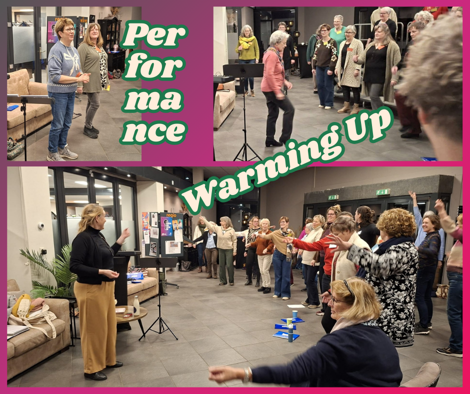 Na zes weken hard repeteren is het op 26 februari zover. We besteden nog een halve repetitie aan de laatste puntjes op de i en staan dan in kleurrijke blouses en de lippen gestift op de risers. We laten aan familie en vrienden horen wat we samen hebben geleerd en dan ook nog uit het hoofd. Super!