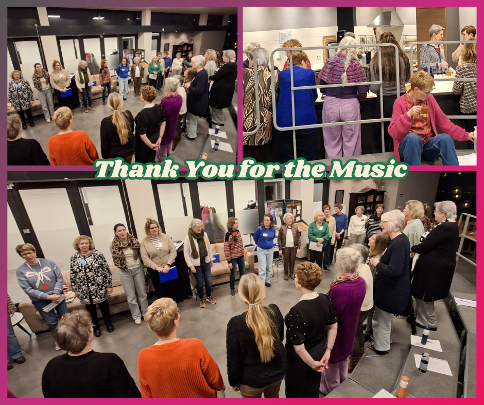 In de vijf/zes weken dat we ons opmaken voor het afsluitende miniconcert blijkt al snel dat de cursisten hard studeren en we al vrij snel een aardig resultaat boeken. We beginnen de repetities met een warming up (door Susan of Irene), de assistent dirigent leert ons twee nieuwe tags en de dirigent gaat verder met ons aan de slag met inzingers en uiteindelijk de songs. Iedere repetitie sluiten we af met een kort stukje van ‘Thank You for the Music’.