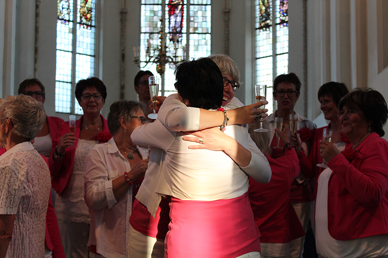 Een volle zaal met enthousiast publiek. Wat wil een jubilerend koor nog meer. Leuke gasten wellicht en een goede ladyspeaker die het publiek door de middag loodst. En zeker mag een strakke organisatie en goede ceremoniemeester niet ontbreken.