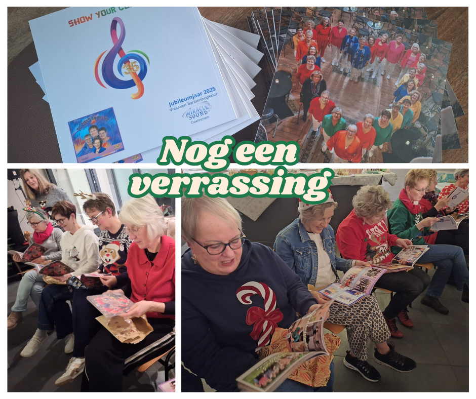 We hebben het er natuurlijk nog even over gehad, ons fantastische jubileumjaar. En ja, daarbij ook weer benoemd dat we maar één ‘echte’ jubilaris hebben, Paulien, die al vanaf de oprichting bij Miracle Sound zingt. Voor ons geen verrassing maar wel voor haar. De hele avond moest ze een kroon op haar hoofd dragen.